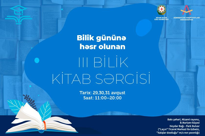 29 – 31 avqust tarixlərində “Azərbaycan Nəşriyyatları Assosiasiyası” İctimai Birliyinin (ANAİB) Nizami Rayon İcra Hakimiyyətinin birgə təşkilatçılığı ilə Nizami rayonundakı Heydər Əliyev adına parkda artıq ənənə halını almış III Bilik Kitab Sərgisi keçiriləcək.